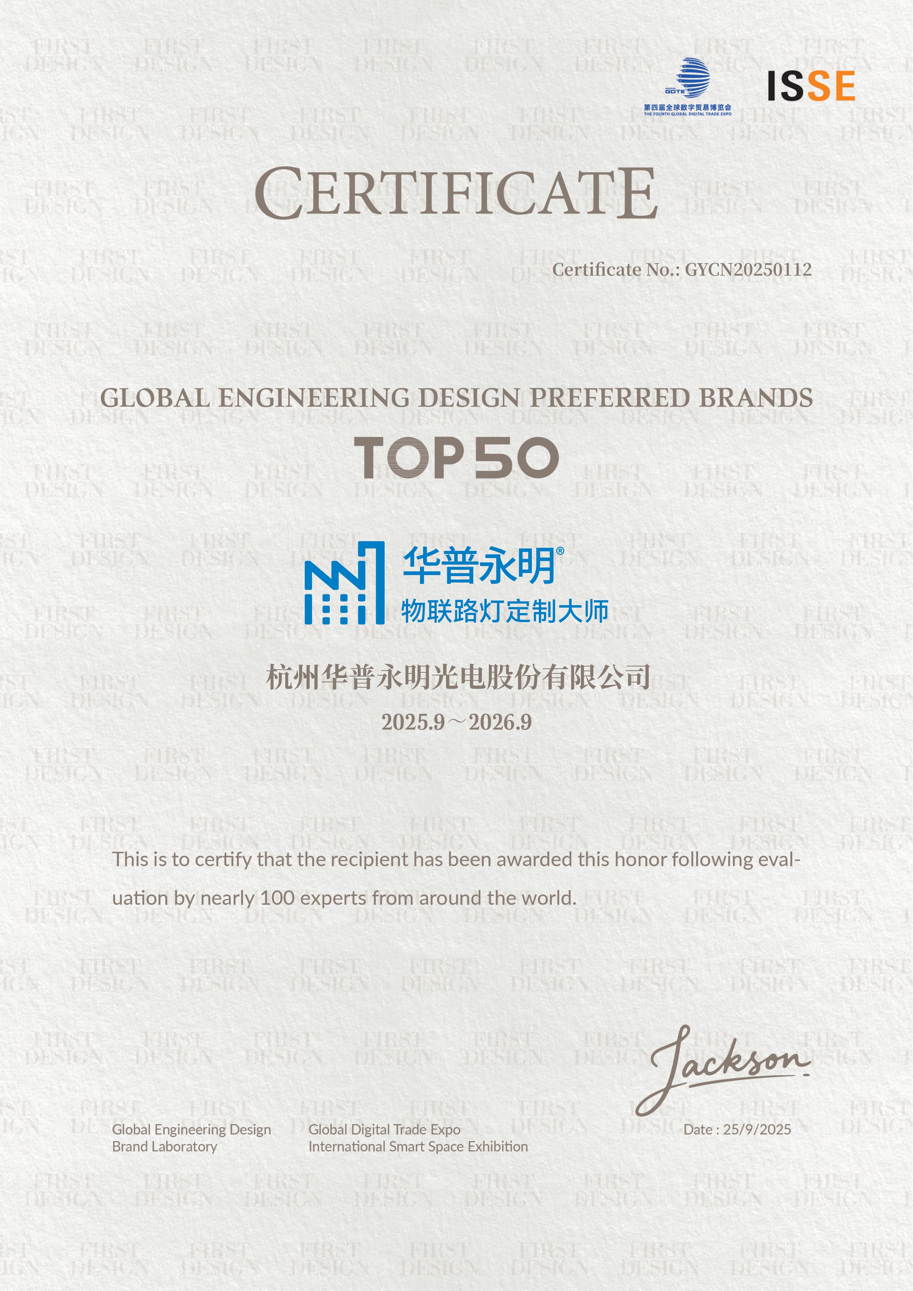 杭州華普永明光電股份有限公司(以下簡稱華普永明)榮耀登榜 "2025全球工程設(shè)計優(yōu)選品牌 TOP50",充分彰顯其在專業(yè)室外照明領(lǐng)域持續(xù)引領(lǐng)行業(yè)創(chuàng)新的硬核實力。